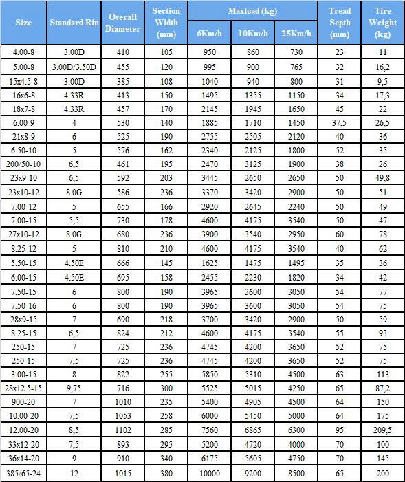 Thông số kỹ thuật lốp xe nâng